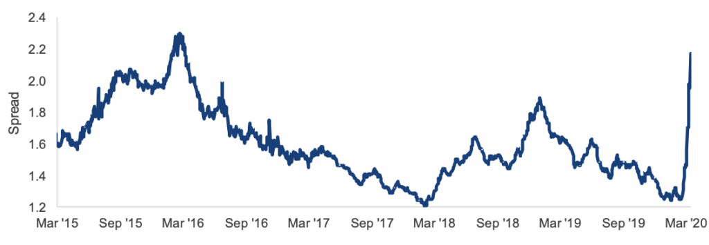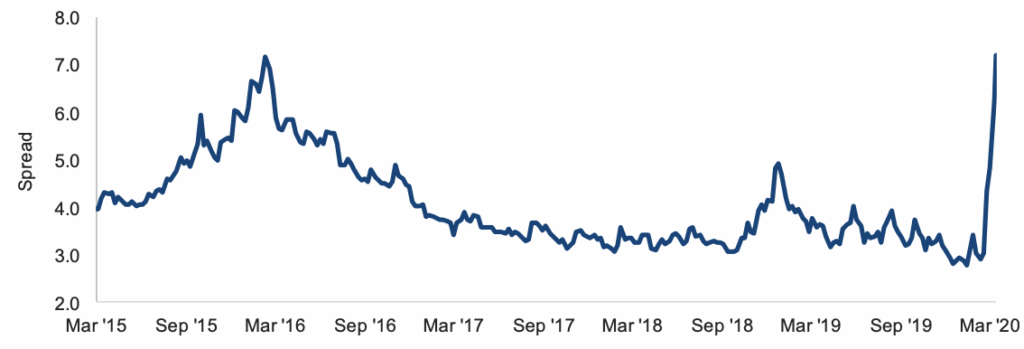 6Source: Bloomberg, as of March 16, 2020. US High Yield ex Energy is represented by the Bloomberg Barclays US High Yield exEnergy Index. Yield to worst reflects the lowest possible yield on a callable bond without the issuer defaulting. It does not represent the yield an investor should expect to receive.