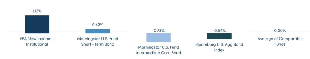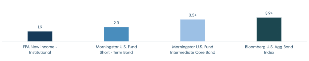 1 “Class-leading” is defined in comparison to the 11 Morningstar Short-Term Bonds and Intermediate Core Bonds, excluding FPA New Income, with at least 40 years of history as listed in the table titled “Risk-Adjusted Returns and Annualized Return Comparison” (referred to herein as “Comparable Funds”) and the Bloomberg U.S. Aggregate Bond Index.