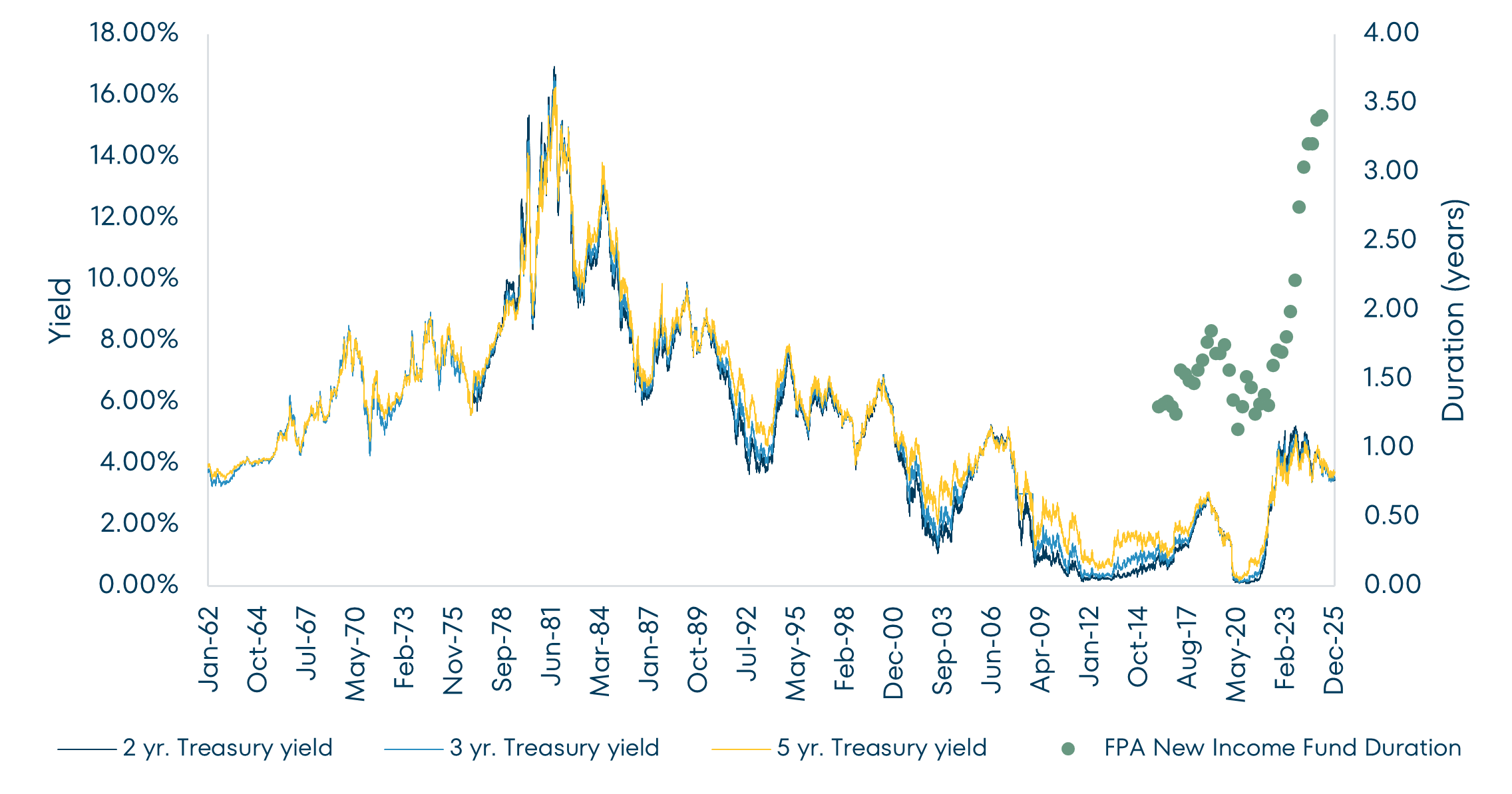 During the fourth quarter, amid a debate about whether to prioritize reining in inflation or supporting the labor market, the Federal Reserve implemented two consecutive 25-basis point cuts to the Fed Funds Rate. When weighing its dual mandate of managing employment and inflation, the Federal Reserve’s Open Market Committee, which determines monetary policy, concluded that inflation risks had tilted to the upside but the balance of risks had shifted such that the downside risks to employment had risen in recent months, making it appropriate to lower rates to stabilize the labor market. The decision to cut rates in December, however, was marked by significant internal division, and resulted in a 9-3 vote with dissents from officials favoring no rate change at all and one governor advocating for a larger, half-point cut. The lack of a unanimous vote highlights the tension between the Fed’s two mandates and a growing debate within the Committee regarding whether inflation or labor market weakness poses the greater threat to the economy. Treasury yields for one- to five-year maturity bonds decreased slightly during the quarter while yields rose slightly for longer maturity Treasuries. Spreads on investment grade and high yield debt decreased further during the quarter. Because spreads are low, we remain focused on buying longer-duration, High Quality bonds (rated single-A or higher) that we believe will enhance both the Fund’s long-term returns and short-term upside-versus-downside return profile. We seek to opportunistically invest in Credit when we believe prices adequately compensate for the risk of permanent impairment of capital and near-term mark-to-market risk. We did not generally view Credit (investments rated BBB or lower) as attractively priced during the quarter. The Fund’s Credit exposure was 3.6% on December 31, 2025 versus 3.8% on September 30, 2025. Cash and equivalents represented 9.1% of the portfolio on December 31, 2025 versus 7.1% on September 30, 2025.