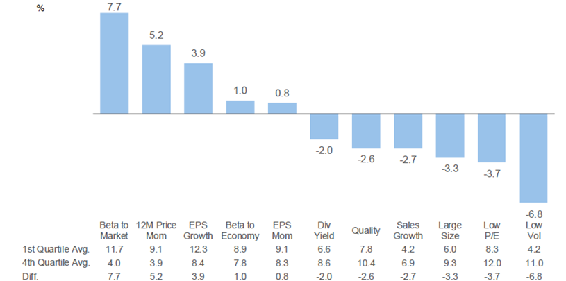 2025 Factor Performance 1st Quartile vs. 4th Quartile Small Blend Sector