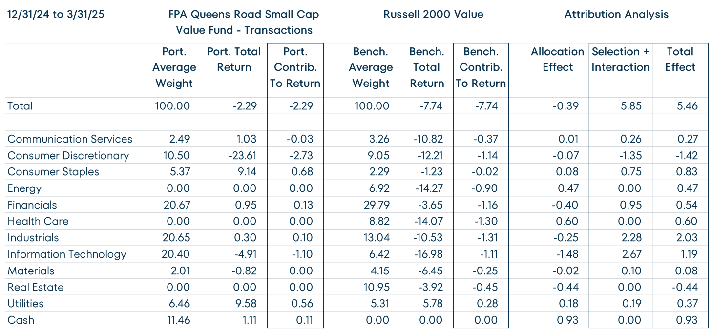 Queens Road Small Cap Value Fund 2025 Q1 Attribution